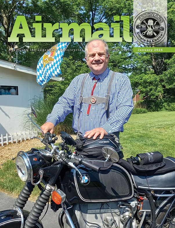 Airmail – January 2026 – Digital Issue In this Issue: 3 From the Top 4 From the Board 5 Head-to-Head 6 Cover Story: Kancamagas = Sixty Years in the Making 12 Perspective: Airhead Delivery Service – Why I Joined the Airheads 16 Perspective: The Best Ride Ever 20 Product Review: EnDuraLast Electronic Ignition 23 Airheads…