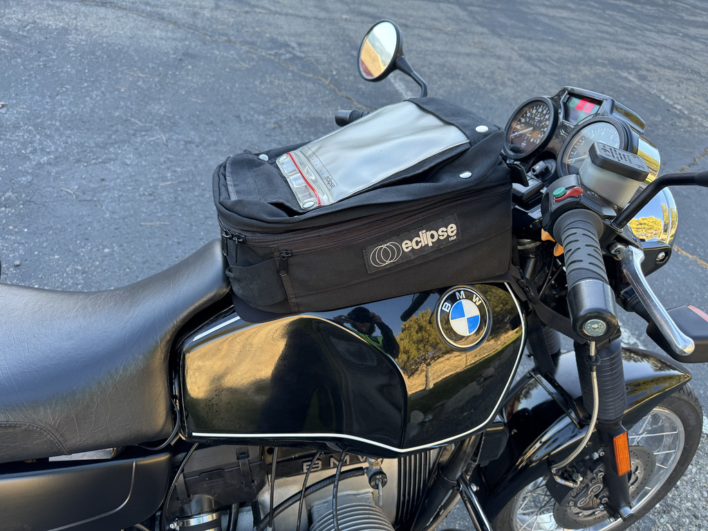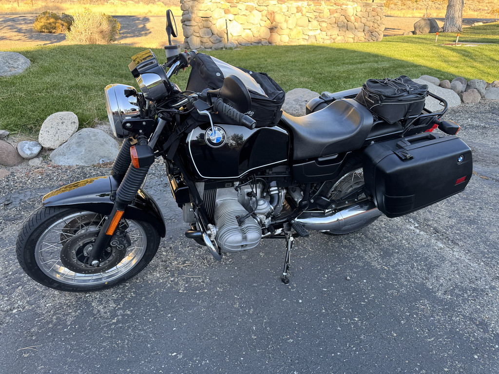 Set up for a solo rider with luggage, panniers, period correct Eclipse tank bag and Wunderlich tail bag.