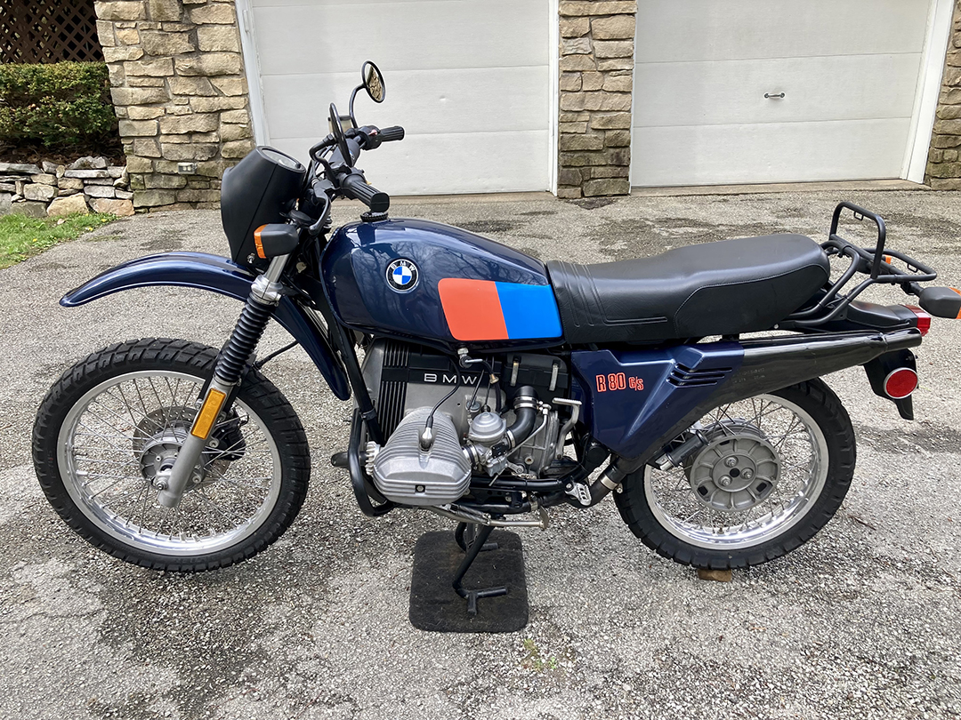 1983 R80 G/S. As nice as they come. Orig paint, un-restored with 10,500 orig.mi. Matching numbers. New fluids, filter, Shinko dual sport tires (Oct. 2025 w 400 mi.on them). Orig. stock Metzler Enduro 1's included. Bike comes with orig. blue stock bodywork and a pristine OEM Paris Dakar kit (tank, solo seat, rear rack, white front fender,hand guards). Ridden once with PD kit installed. I am the third owner. I bought the G/S from a good friend who owned Heritage BMW of Pittsburgh. He received the bike in stock form as a trade-in somewhere around 1987 with 9K miles on the clock. Documentation shows that the original owner purchased in Los Angeles-1983. Bike received full service, cleaned and prepped for storage/display. Fluids were drained, cylinders oiled and bike was coated with a thin film of protective oil before displaying in the shop until the dealership closed it's doors in 2008. At that time, the owner moved it to his climate controlled home until I took over ownership 2021.