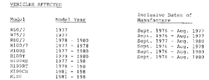 The recalled wheels could be from model years 1977 well into 1983. Because sometimes wheels from various years can be found on other year bikes, DO CHECK YOURS.