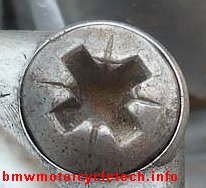 BMW supplies a screwdriver 71-11-1-103-086 in the on-bike tool kit. “Phillips” & standard flat blade ends, reversible. The ‘Phillips’ end is NOT a PosiDrive nor is it a Reed & Prince tip. There are better choices, stronger, longer lasting, but it is not always easy to find a screwdriver that is small, and has both phillips and single slot (flat) ends, and fits your tools bag for the on-bike kit. Some folks purchase one of the SnapOn types, with assorted hardened magnetic tips that fit inside the handle. If you have the room and budget, the Snap-On is a QUALITY tool, that almost never wears out the tips. Be sure you have the proper size tips. The proper Phillips size is #2 for the carburetor top screws WHEN they are Phillips.