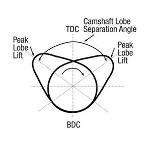 This is the angle in degrees between the centerlines of the intake and exhaust lobes. A 112-degree lobe separation angle means that the peak opening points of the intake and exhaust lobes are 112 degrees apart. This measurement is another way of expressing valve overlap, which is the amount of time that both valves are open on the same cylinder. If the lobe separation angle were 0 degrees, both the intake and exhaust valve would open and close at the same time. Measurements typically range between 104 and 115 degrees.