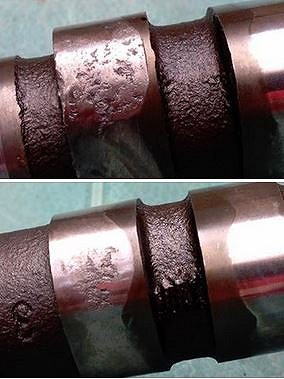 Brand-new lifters/followers should be coated with a special high pressure cam assembly lubricant when assembling the engine. Unfortunately, many fail to do this. If you do not use such a camshaft assembly lubricant, at least use a reasonably high ZDDP oil for break-in. You can use 10W40 or 20W50 Golden Spectro 4 for break-in and everyday use …..these are not car-rated (ignore what the container seems to say or imply), but have relatively high old-fashioned ZDDP additive levels. There are other brands, and some with very high levels of ZDDP (Not recommended), etc. See my oil articles for information. Do not use car oils, nor should you break in a fresh top end on full synthetics, is my basic advice. I assemble camshafts & followers using a break-in “assembly lubricant”. This is not a moly-type oil. It is a special anti-scuffing oil and the ones I use generally came from manufacturers or re-grinders of camshafts. Some of the products I use are no longer available. Auto-parts stores that specialize in racing items usually carry these types of assembly lubricants. One that is OK, and relatively common, is from the Royal Purple folks, their product called Max-Tuff.