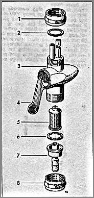 HINT: One needs a good grunt to push the threaded nut & handle assembly back into the body to get its threads started properly. Some folks think this is easier by using a bench vise (carefully, don’t over-squeeze!) on the NUT portion, & pushing the petcock portion, …SQUARELY!! …to the nut. NUT here means the knurled or slot part (possibly under a black plastic cover, which pries off).