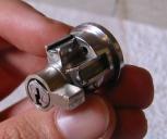 Repeat this process for the remaining three holes. The final hole (furthest forward) may require a different pressing implement — I used a small flathead screwdriver. Once the cover’s on and seems to be ok, try your key. If it still works, you’ve got a shiny new lock. If not, repeat the pin removal process (don’t forget the plastic bag) and rearrange the pins until it works.