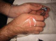 Make sure the plastic bag is big enough to fit both your hands into and still work. Put the old lock into the bag, and using whatever tools work for you (I used a pair of pliers) remove the sliding cover. When you get the cover off, the springs will all fly out, and you’ll be really happy you were working inside a bag instead of out in the open.