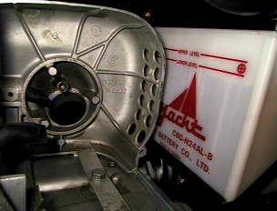 The battery is replaced, then the aircleaner housing halves and the airfilter. A little silicone spray and some needle nose pliers really help to pull the crankcase vent hose into the right hand air intake. Reattach the battery box to the frame with the two 10mm nuts. The carbs go back on the heads and aircleaner housing. If you were gentle with them and didn’t pull on them or bang them around, you shouldn’t need to rebalance them. Fuel tank back on, tool tray back in, replace any drained oil and you are all set.