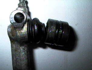 The throwout assembly goes back to the rear of the gearbox. Loosen and back out the adjuster bolt a little. Be sure to coat the pivot pin with grease and put a little grease in the cup where the throwout rod contacts the throwout lever. Do you need to replace the little rubber boot that covers the cup? When you have properly adjusted the throwout lever and clutch hand lever, the throw out lever should be, or close to, parallel to the back cover of the gear box.