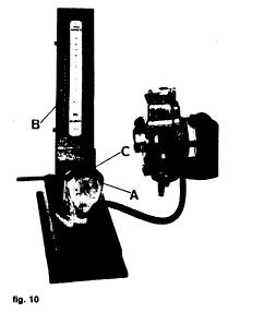 — Connect each barrel to the mercury manometer, taking off the blanking plugs provided on the vacuum intakes and fitting instead the proper vacuum connectors. If a compensator is fitted, dismantle it and connect the compensator connections to the mercury manometer.