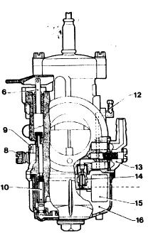 As shown in figure 27, on opening the throttle slide (9), lever (8) controlled by a special cam (7) cast into the front of of the throttle slide, acts directly on the pump diaphragm ( 1), I held out by the spring (2).